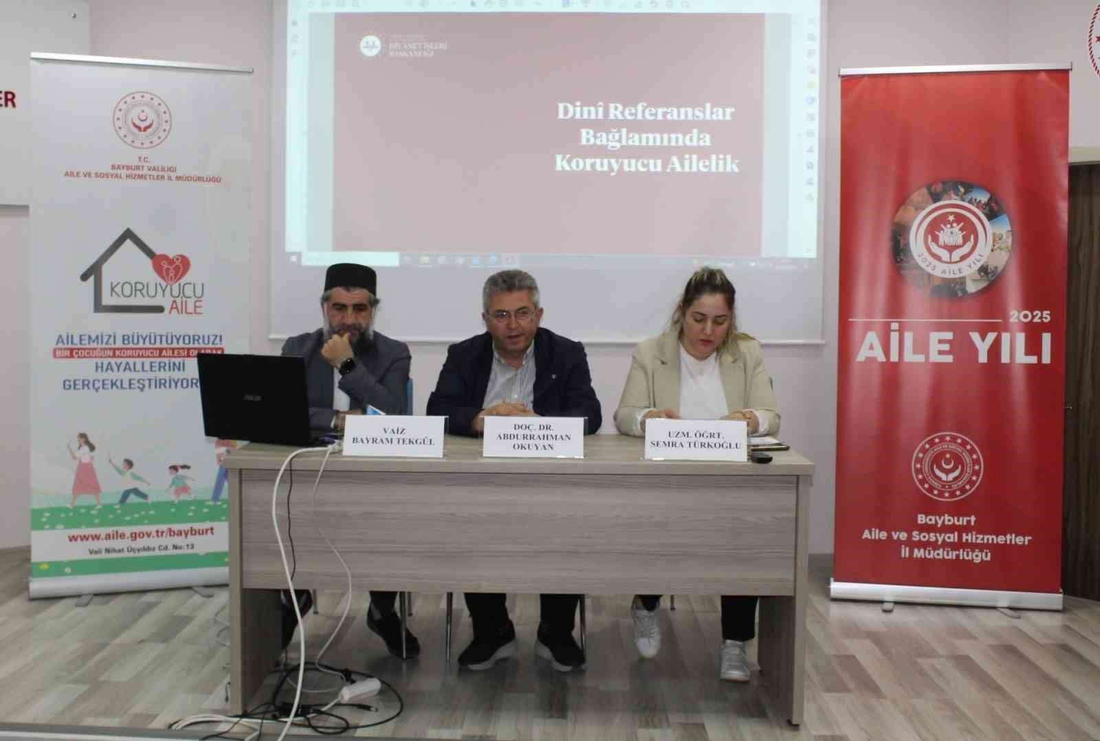 **Koruyucu Aile Olmanın Farklı Yönleri Bayburt’ta Ele Alındı**Bayburt Aile ve Sosyal Hizmetler İl Müdürlüğü, Aile Yılı etkinlikleri kapsamında önemli bir söyleşiye ev sahipliği yaptı. “Koruyucu Aile” temalı etkinliğe, akademik ve manevi açıdan uzman isimler katılım gösterdi. Doç.