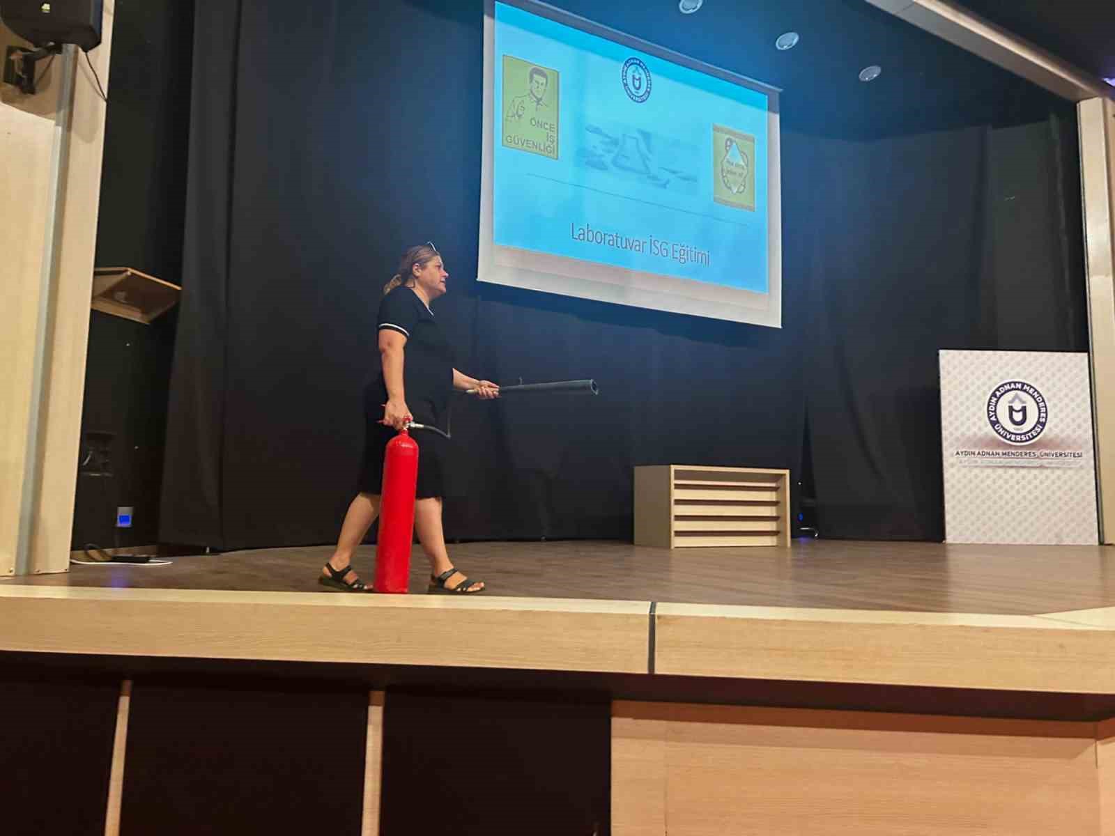 Üniversitenin İş Sağlığı ve Güvenliği uzmanı Gülay Kandemir tarafından yönetilen “Laboratuvar İş Sağlığı ve Güvenliği” eğitimi, laboratuvar ortamlarında dikkat edilmesi gereken önemli konulara odaklandı. Özellikle ispirto ocağı kullanımı sırasında alınması gereken güvenlik önlemleri üzerinde detaylı bilgiler verildi.