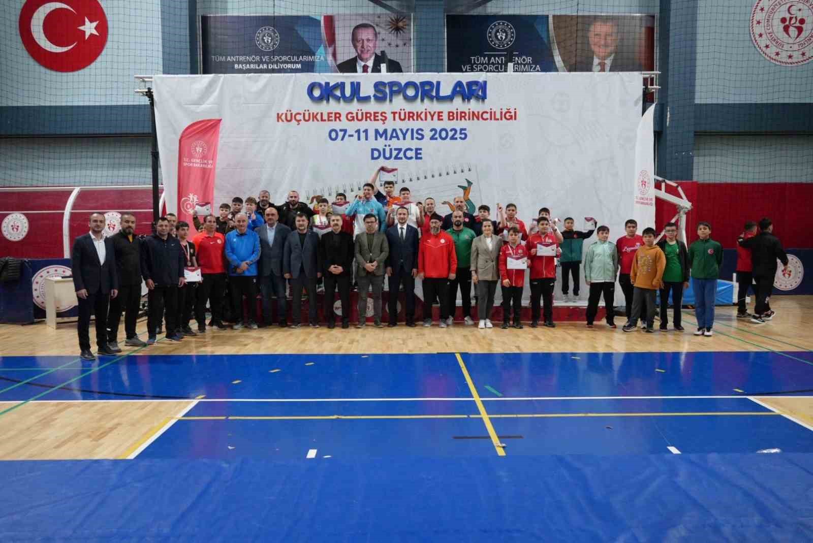 Düzce Bahçeşehir Spor Salonunda düzenlenen Okul Sporları Küçük Erkekler Serbest ve Grekomen stilde Güreş Türkiye Birinciliği, 41 ilden yaklaşık 700 katılımcının katılımıyla gerçekleştirildi. Şampiyonaya ülkemizin dört bir yanından gelen küçük pehlivanlar katıldı ve minderde kıyasıya mücadele etti.