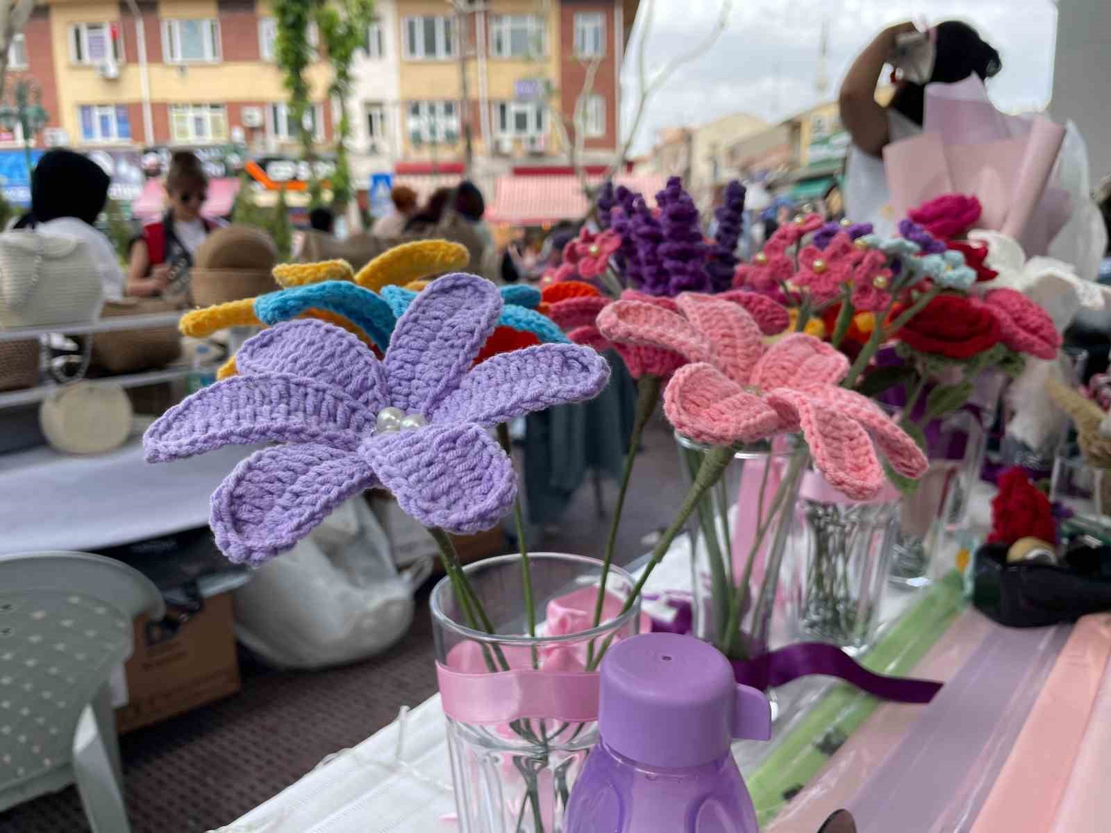 Doğum günleri, Anneler Günü gibi özel günlerde sevdiklerine farklı ve kalıcı bir hediye vermek isteyenlerin ilk tercihi haline gelen örgü çiçekler, görenlerin dikkatini çekiyor.