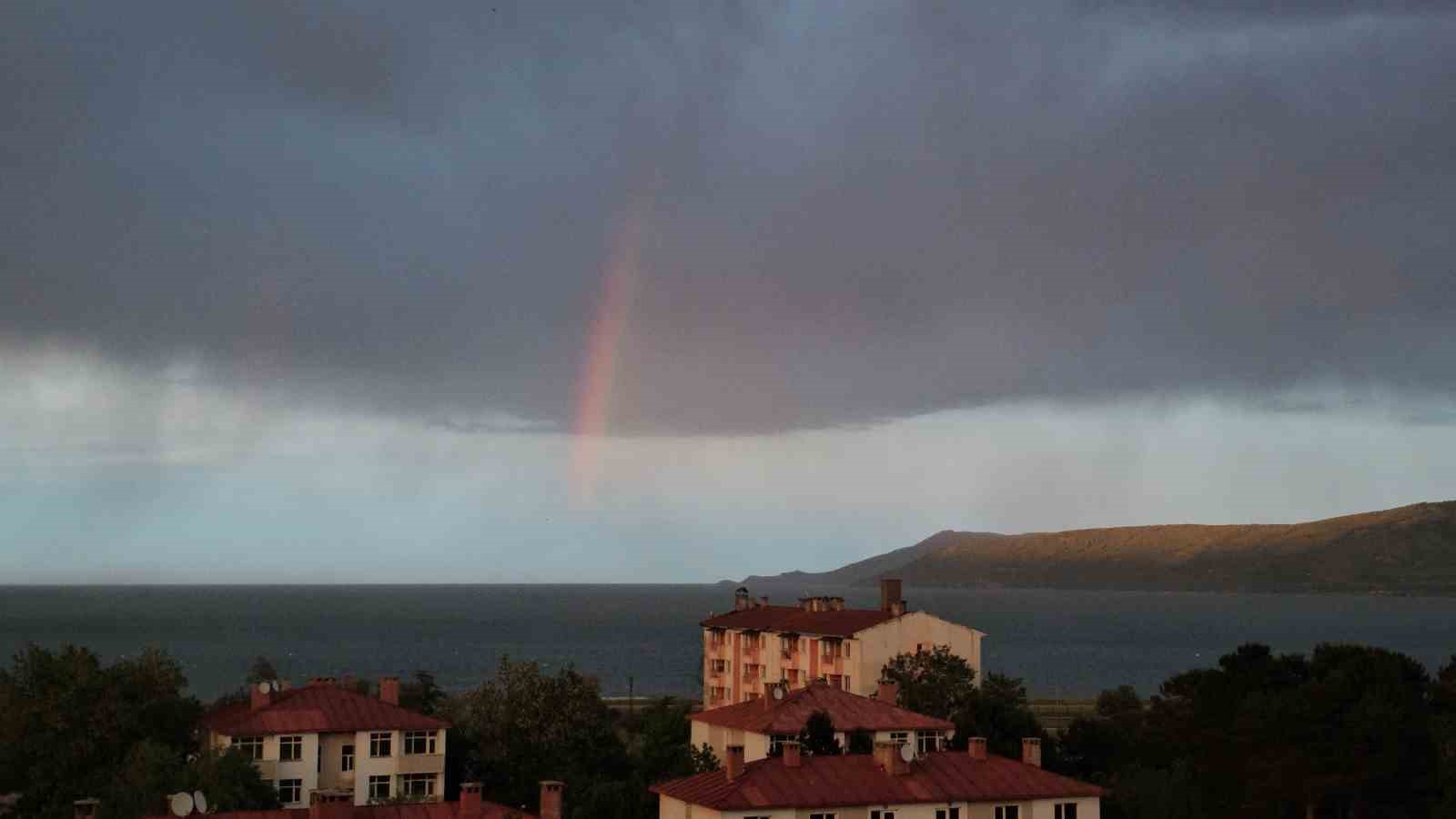 **Gökkuşağının Zamanlaması Dikkat Çekti**Gökkuşağı genellikle gündüz saatlerinde görülürken, bu sefer akşam saatlerinde ortaya çıkmasıyla dikkat çekti. Normalden farklı zamanlaması, özellikle fotoğraf ve doğa tutkunlarının ilgisini çekti. Bu olağanüstü olayın ardında, atmosferdeki nem oranı ve ışığın kırılması ile güneşin alçalan açısının bir arada etkili olduğu belirtiliyor. Bölgedeki doğaseverler, bu muhteşem manzarayı izleme fırsatını kaçırmadı.