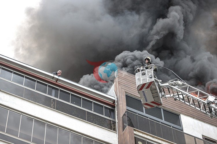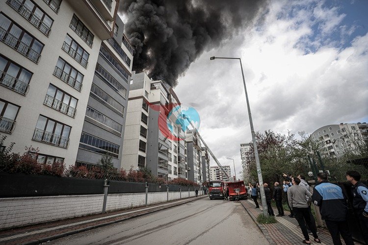 Millet Mahallesi'nde yer alan sekiz katlı bir apartmanın üst katında, izolasyon çalışması sırasında kullanılan sıcak ziftin çatıyı tutuşturmasıyla yangın meydana geldi.