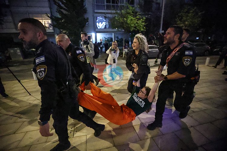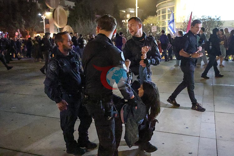 Tel Aviv'de savaş karşıtı göstericilere polis müdahale etti, 17 kişi gözaltına alındı.