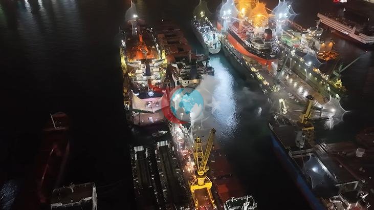 Tuzla'da Evliya Çelebi Mahallesi'nde bulunan tersaneler bölgesinde demir atan 120 metre uzunluğundaki bir kuru yük gemisinde, sebebi henüz belirlenemeyen bir yangın meydana geldi.