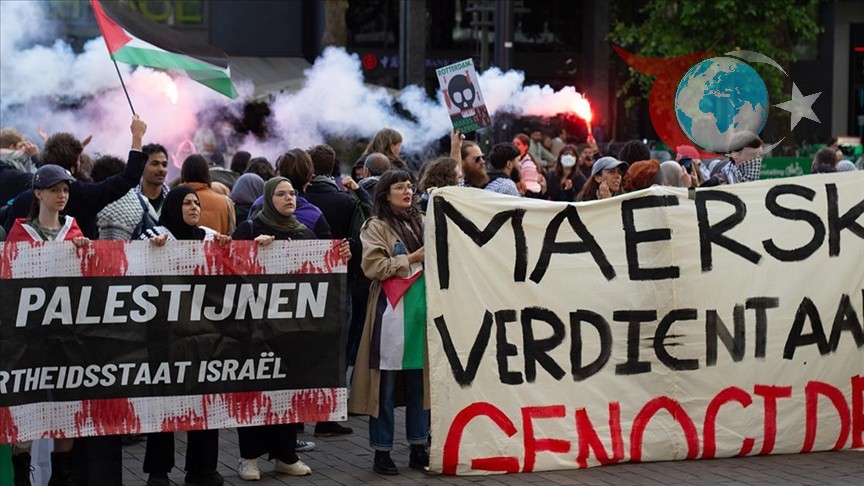 Hollanda'nın Rotterdam kentinde düzenlenen protestoda, Maersk gemisinin getirdiği F-35 parçalarına karşı tepkiler yükseldi.
