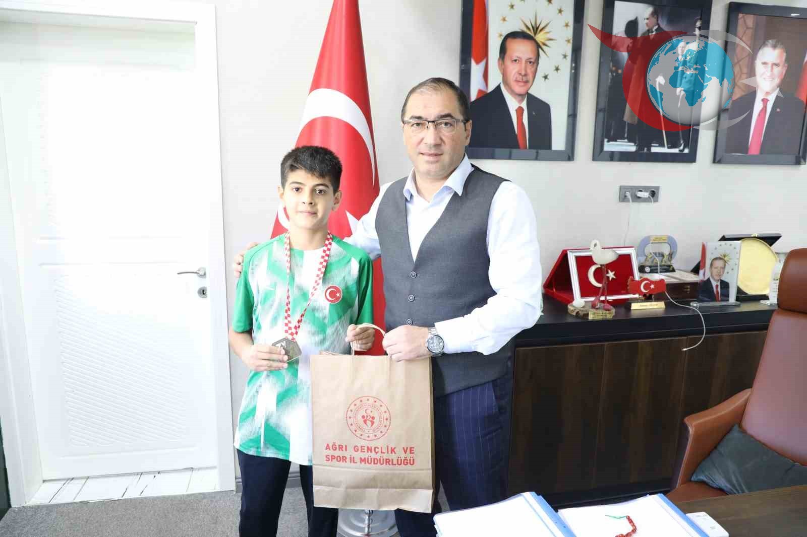 Ağrılı sporcu Eyüp Murat Alpaslan, Hırvatistan’daki turnuvada altın madalya kazanarak büyük bir başarı elde etti ve Gençlik ve Spor İl Müdürü Ahmet Çelebi’yi ziyaret etti.