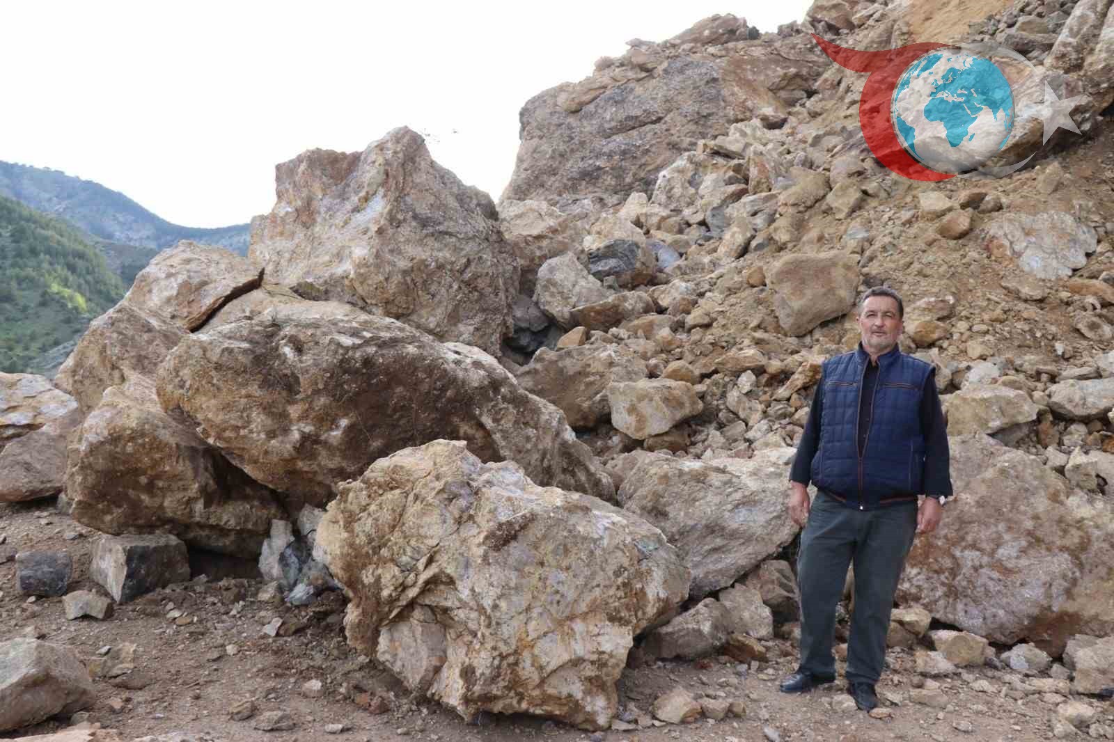 Oltu ilçesinde yaşanan heyelan nedeniyle Kemerkaya Mahallesi yolunu ulaşıma kapatan dev kayalar, yetkililer tarafından kaldırılacak.