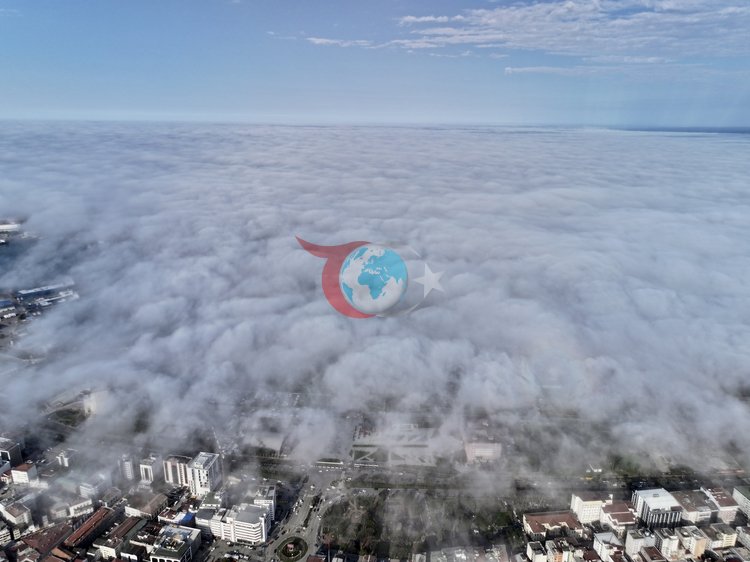 Samsun'da Atakum ve İlkadım'ı kaplayan yoğun sis, dronla görüntülenerek büyüleyici bir manzara sundu.