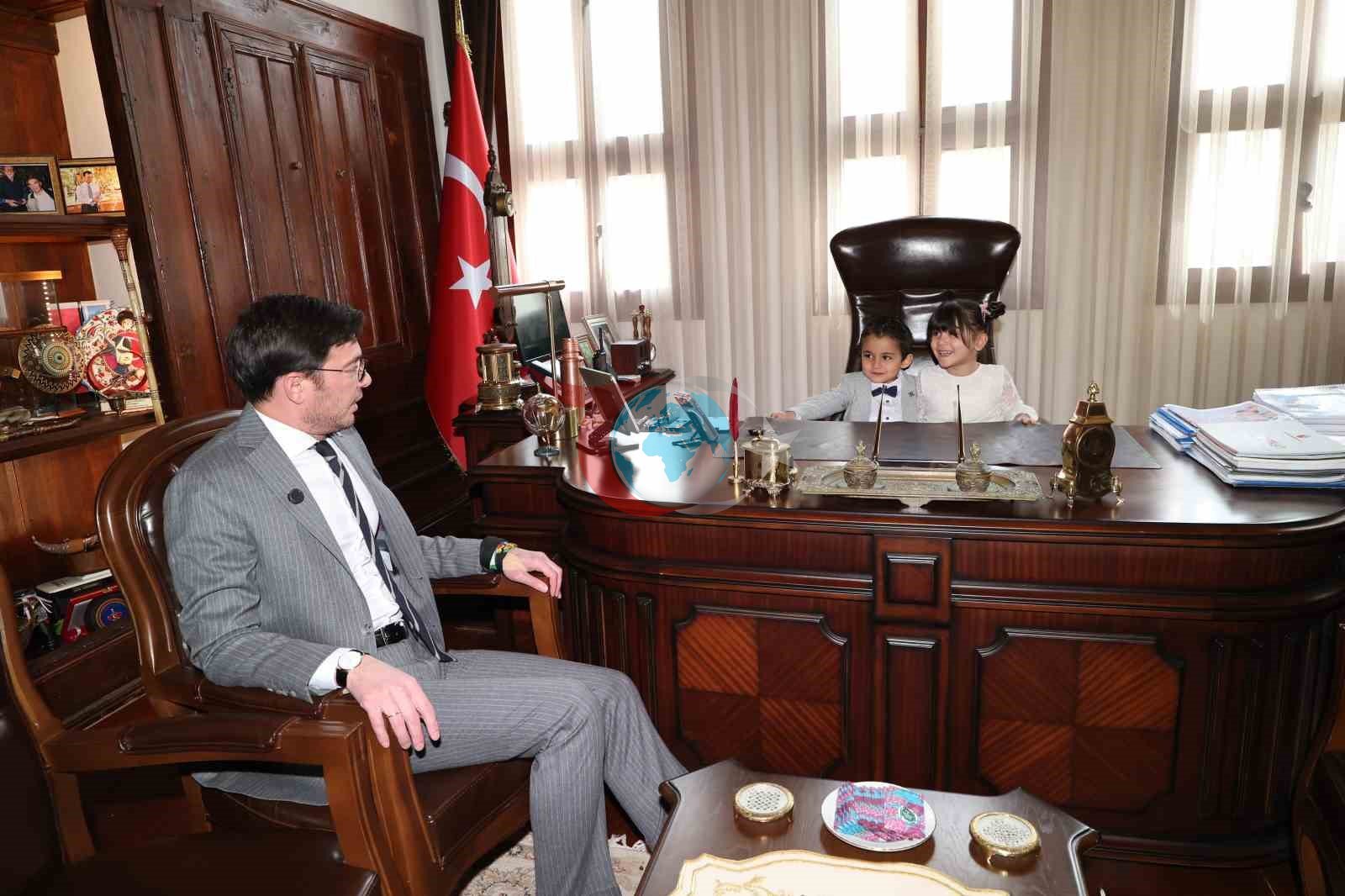 Tokat Belediye Başkanı Yazıcıoğlu, 23 Nisan'da anaokulu öğrencilerini ağırlayarak temsili başkanlık devri yaptı.