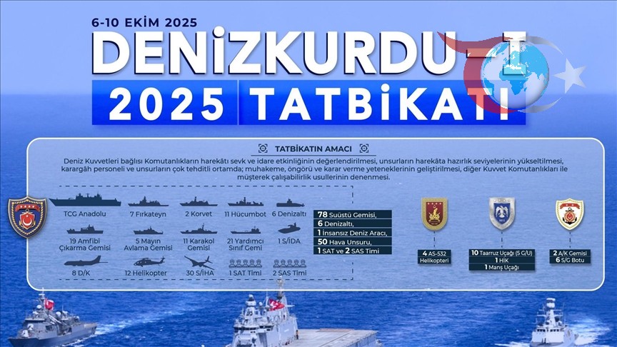Türkiye'nin Deniz Kuvvetleri, Denizkurdu-I 2025 Tatbikatı ile harekat yeteneklerini ve hazırlık seviyelerini artırmayı hedefliyor. Tatbikatta geniş bir katılımla deniz ve hava unsurları görev alıyor.