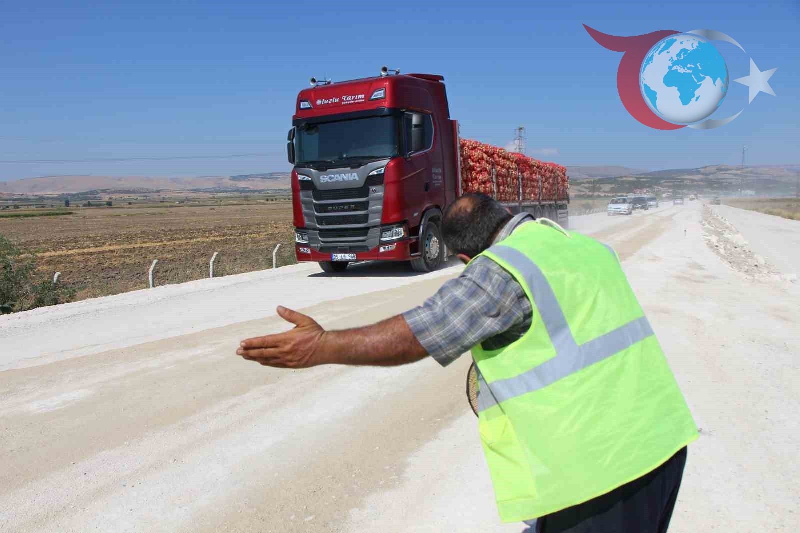 Amasya'daki yol çalışmasında çalışan Özcan Selim Çıtak, düdüğüyle sürücülere moral verirken, sempatik tavırlarıyla yola neşe katıyor.