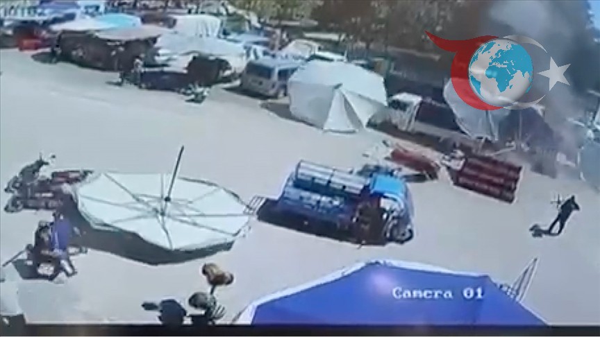 İzmir'de bir semt pazarında alışveriş yaparken rüzgarın etkisiyle savrulan pazar şemsiyesi altında kalan hamile kadın ve çocuğu, çevredekiler tarafından kurtarıldı.