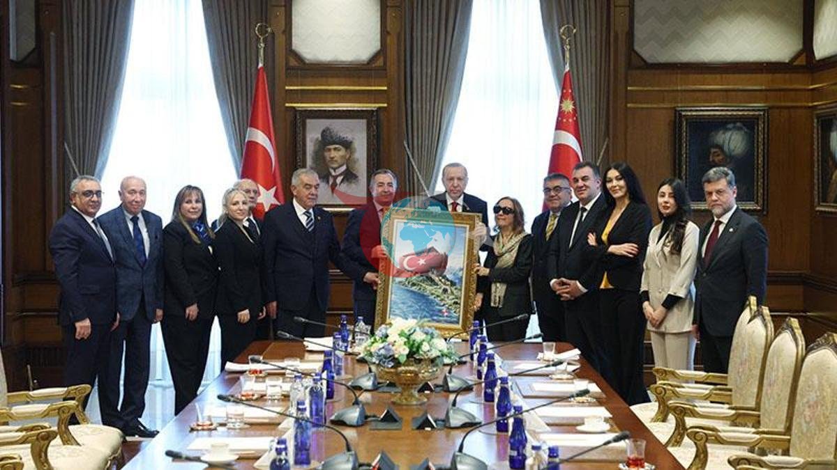 Cumhurbaşkanı Erdoğan, Türk Demokrasi Vakfı heyetini Cumhurbaşkanlığı Külliyesi'nde kabul etti. Toplantı gizli yapıldı ve fotoğraf paylaşıldı.
