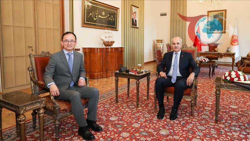 Türkiye ve Çin arasındaki ilişkilerin güçlenmesi adına TBMM Başkanı Numan Kurtulmuş, Ankara'da Çin Büyükelçisi Jiang Xuebin'i kabul etti.